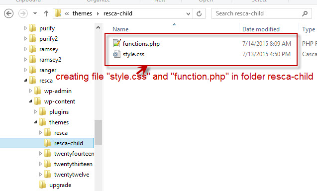 Creating a new folder for your child theme. Naming it something like “Resca-child” is common. Within your new theme folder, create two files called style.css and functions.php.