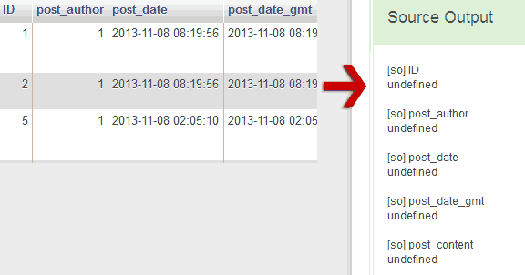 The image below is an example of how the fields in your WordPress SQL Data Table will be exported to your pipe system.